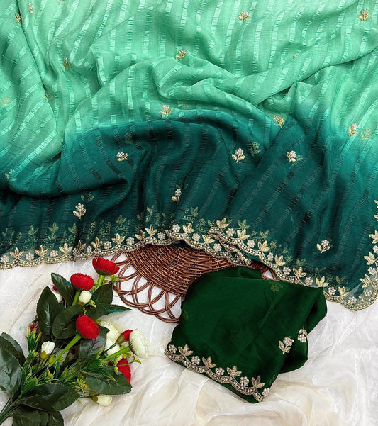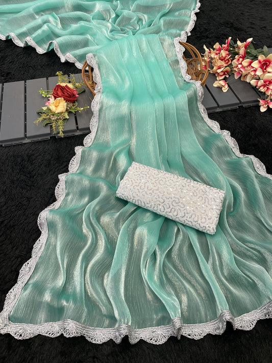 .Viscose Georgette Saree With Beautiful Jacquard Buti