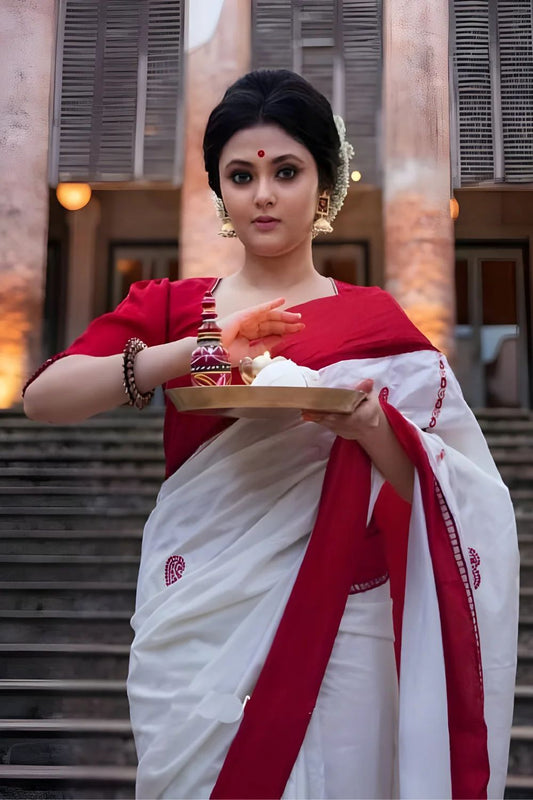 Blend Of High Quality Cotton and Silk- Saree With Readymade Blouse