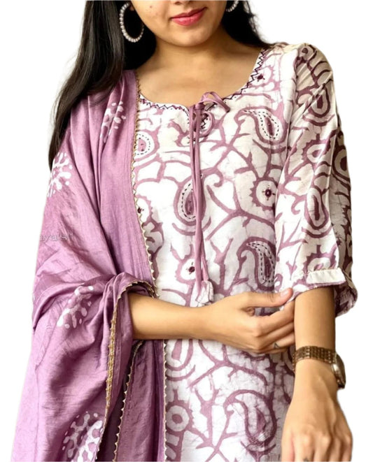 Black Cotton Kurti Pant Silk Dupatta