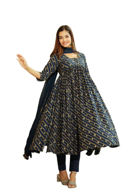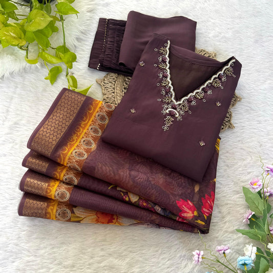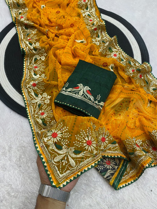 Heavy Hand work Bandhej 3 piece Set With Gota & Zardosi Add on