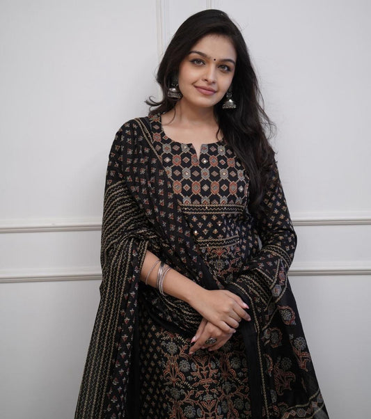 Mughal-Inspired Block Print In Designer Three-Piece Set