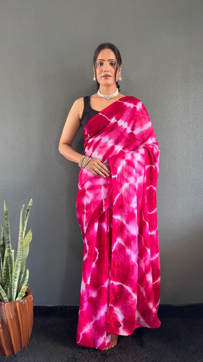 Georgette Lahariya Saree – 1-Min Ready to Wear Pre-Stitched Saree for Women