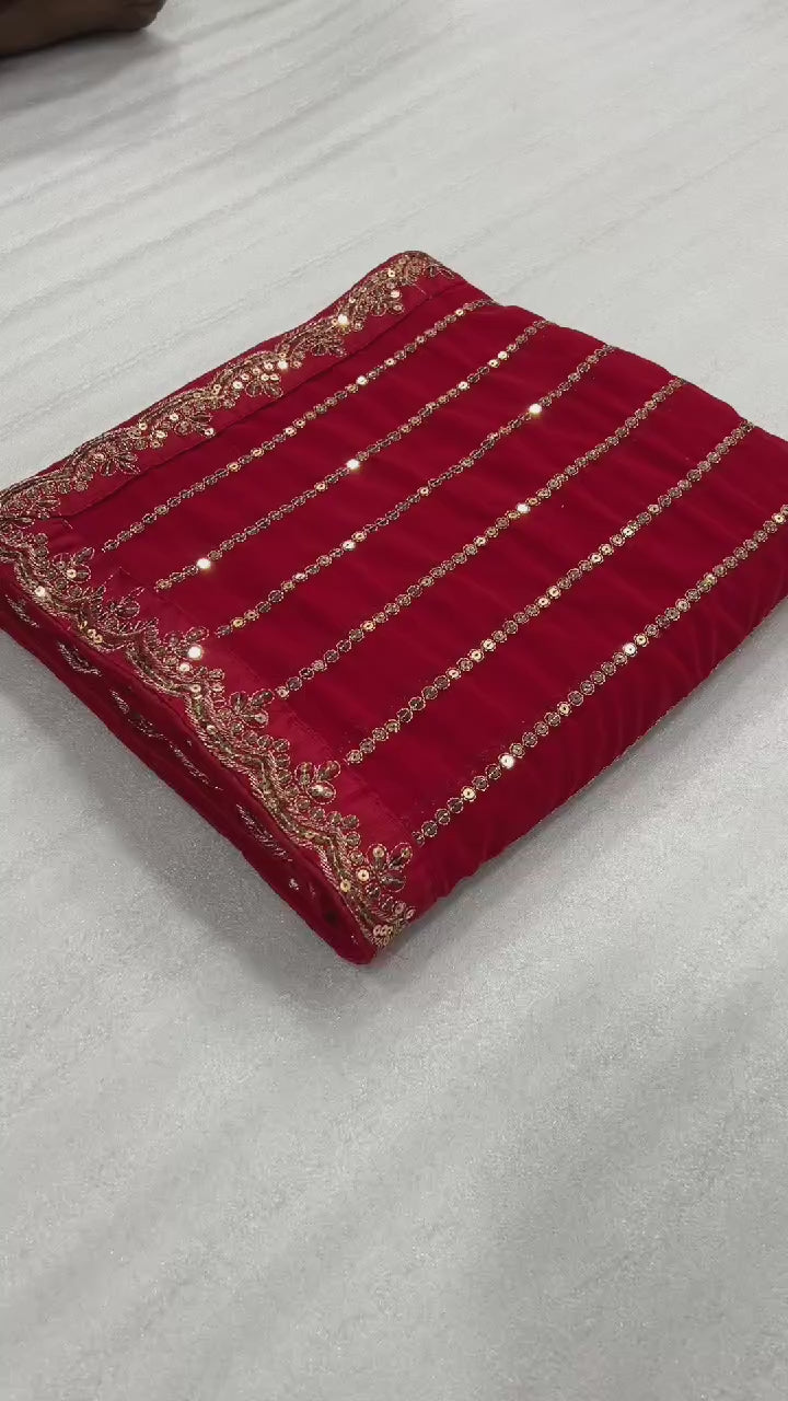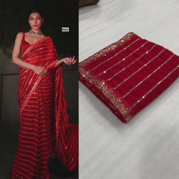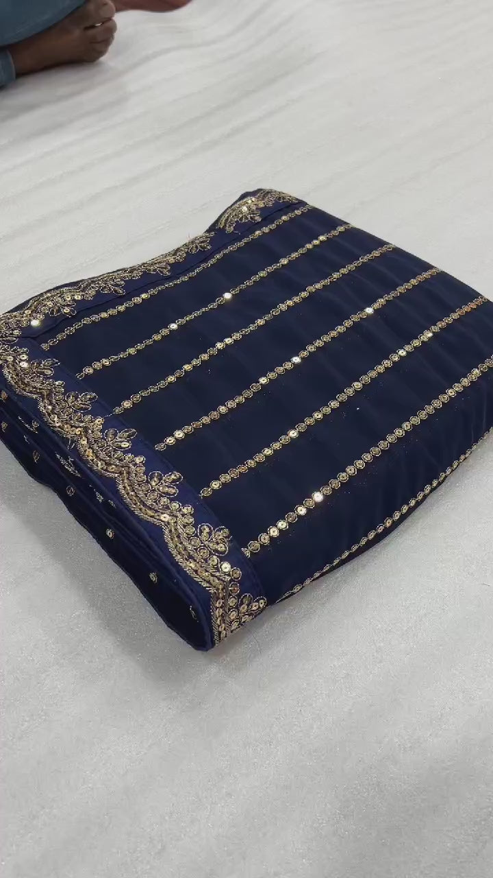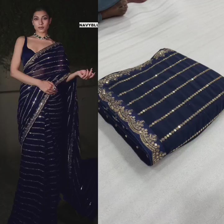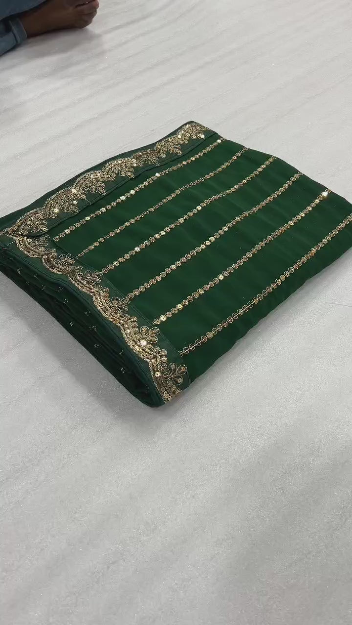 - Full Saree Of 60 Gram Georgette With Heavy 5MM Sequins Embroidery Work