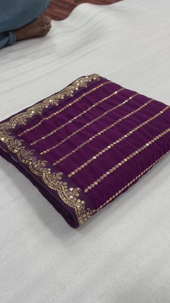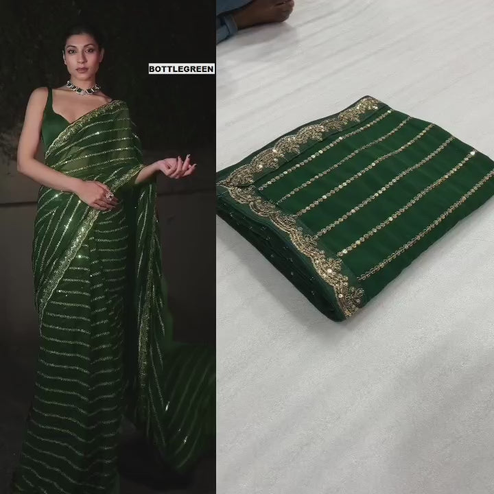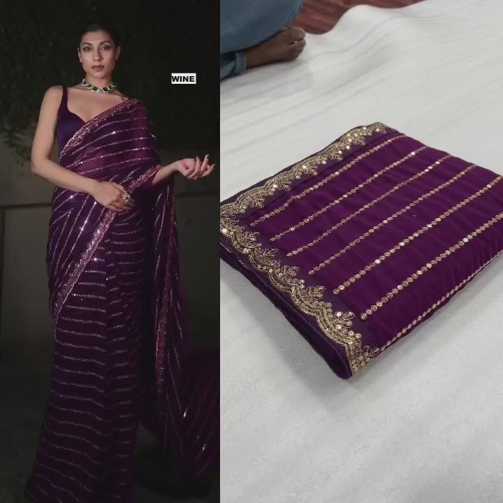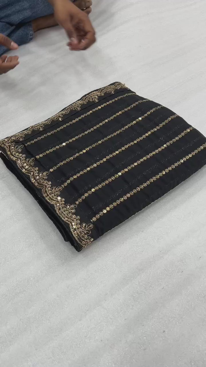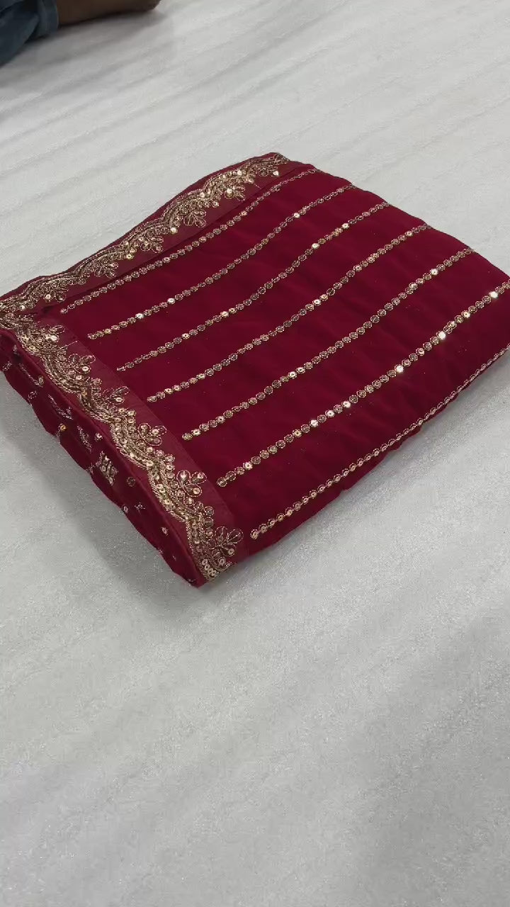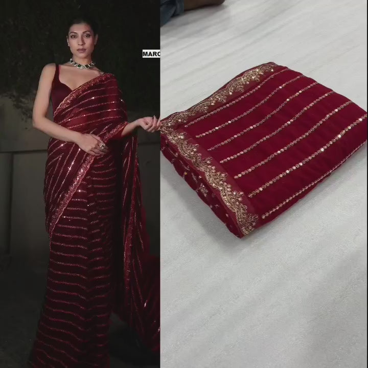 - Full Saree Of 60 Gram Georgette With Heavy 5MM Sequins Embroidery Work