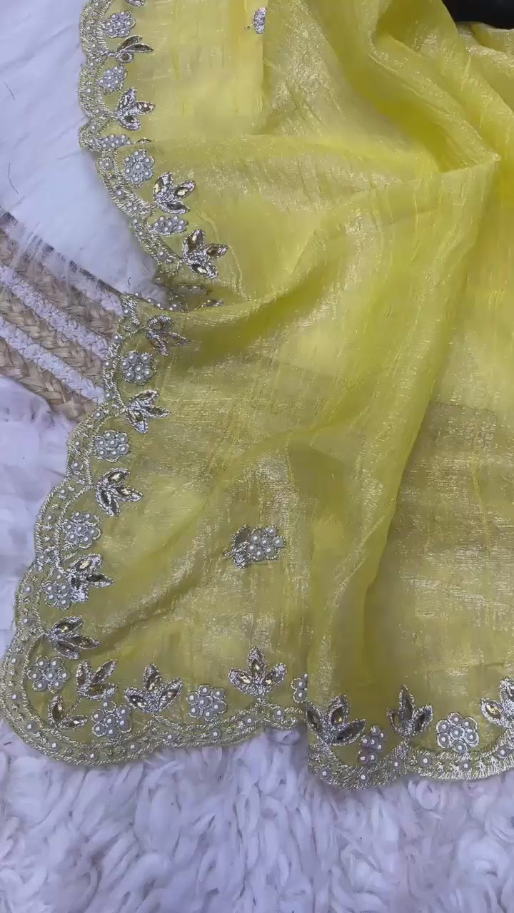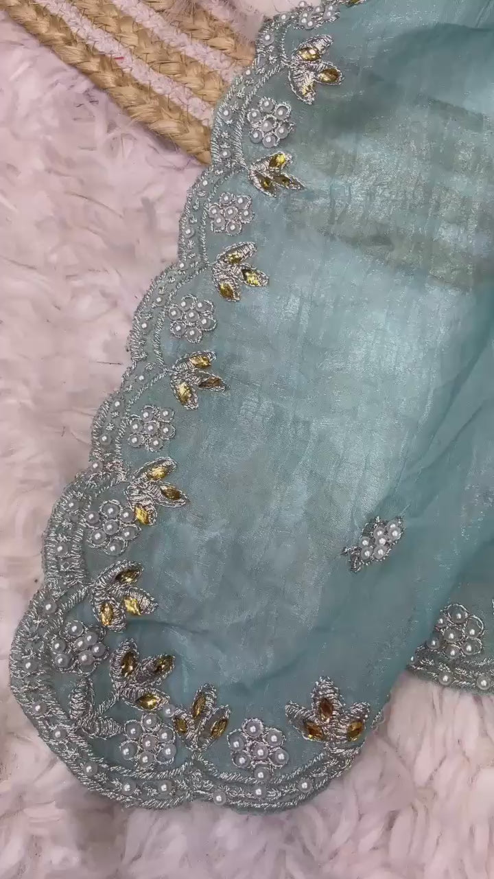 - Fabric : Crunchy Fabric with Exquisite C-Pallu Moti Thread Cut Work Lace