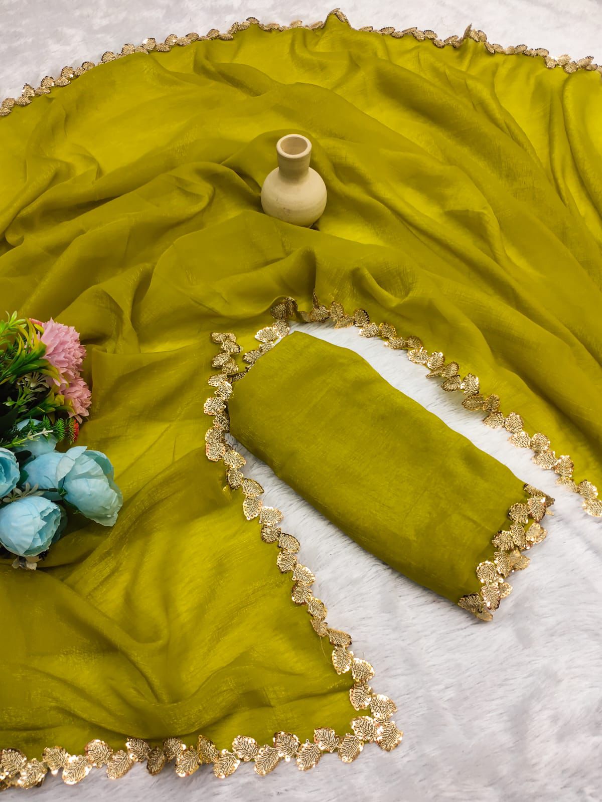 Saree fabric : crunchy crush with tranding cut work lace. - Blouse(Unstitch)