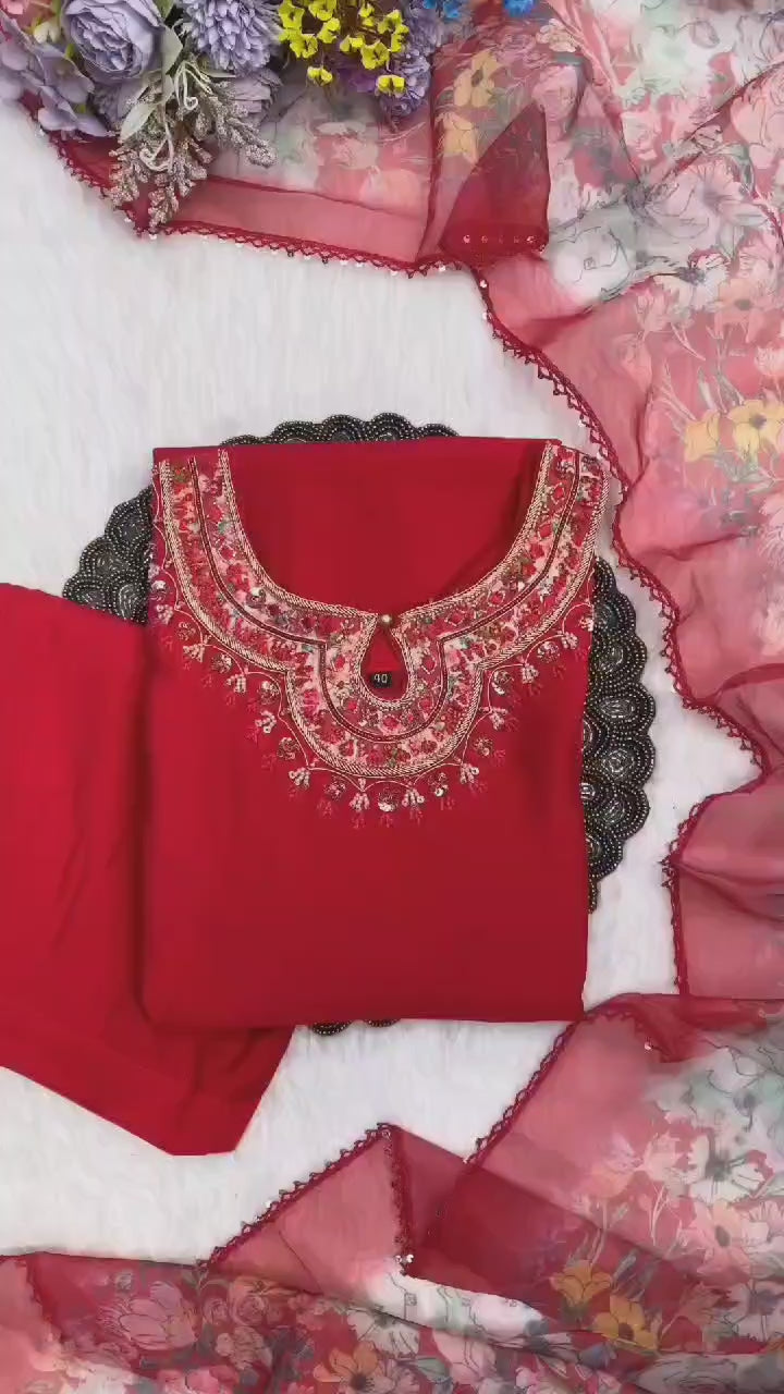- Silk designer handwork kurti with pant and dupatta