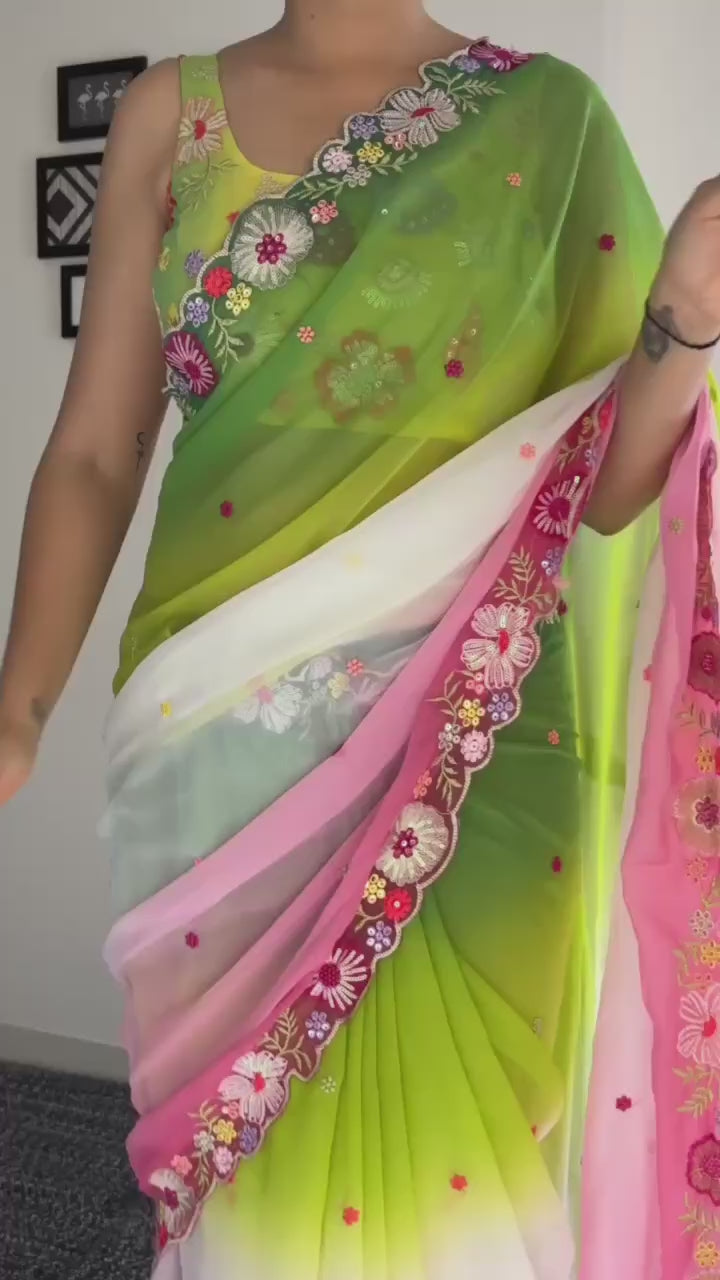 - SAREE WORK- Multicolor sequin work and embroidery work with arca cutting