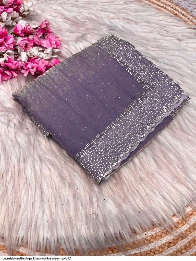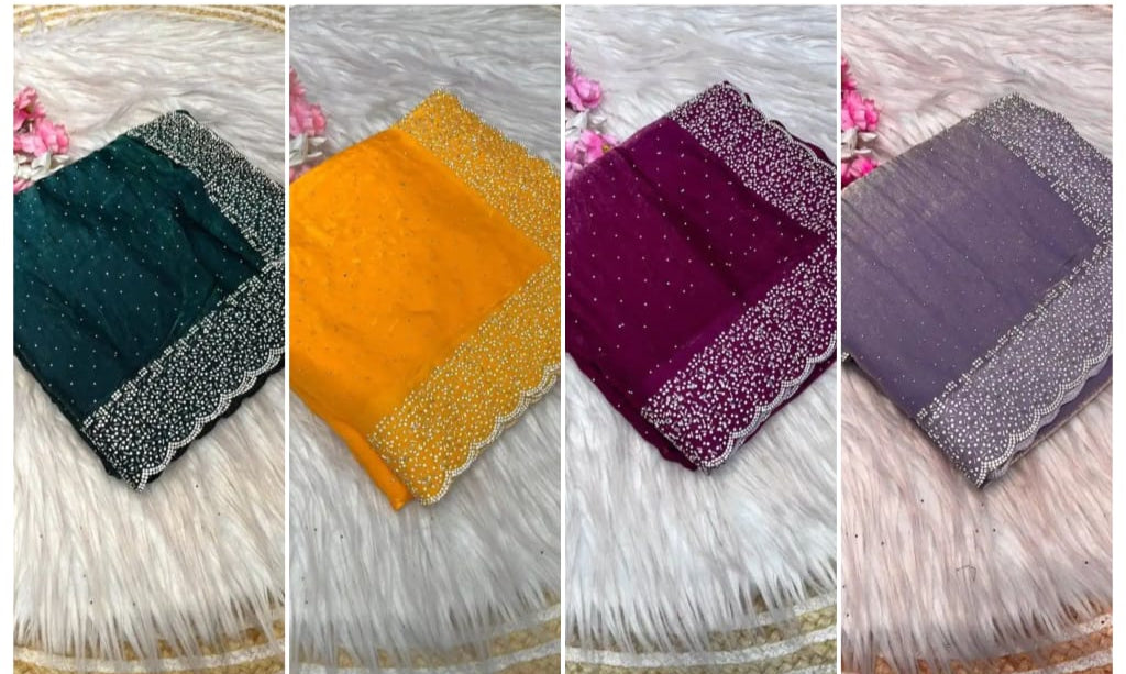 - This Fendy saree features a dual-shade design crafted from delicate chiffon fabric, blending elegance with contemporary style.with jharkhan work