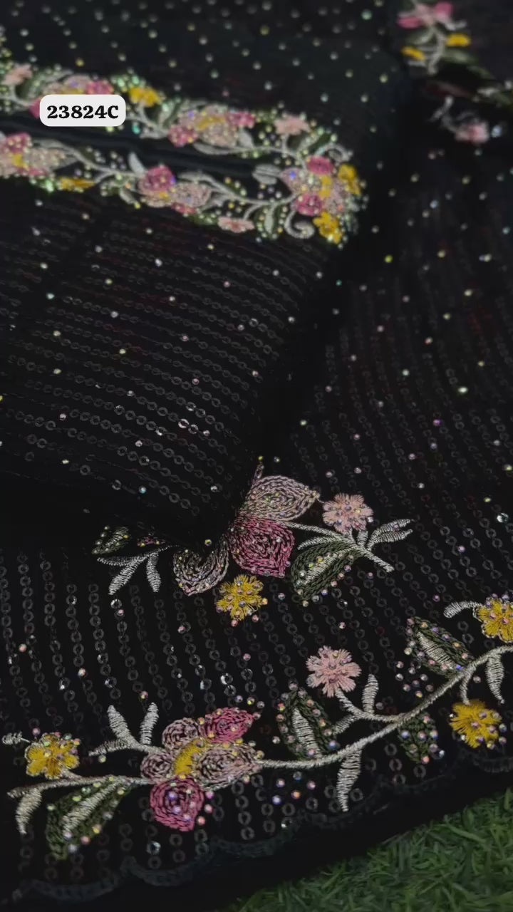 Black Georgette Suit Fabric With Pure Heavy Designer Work