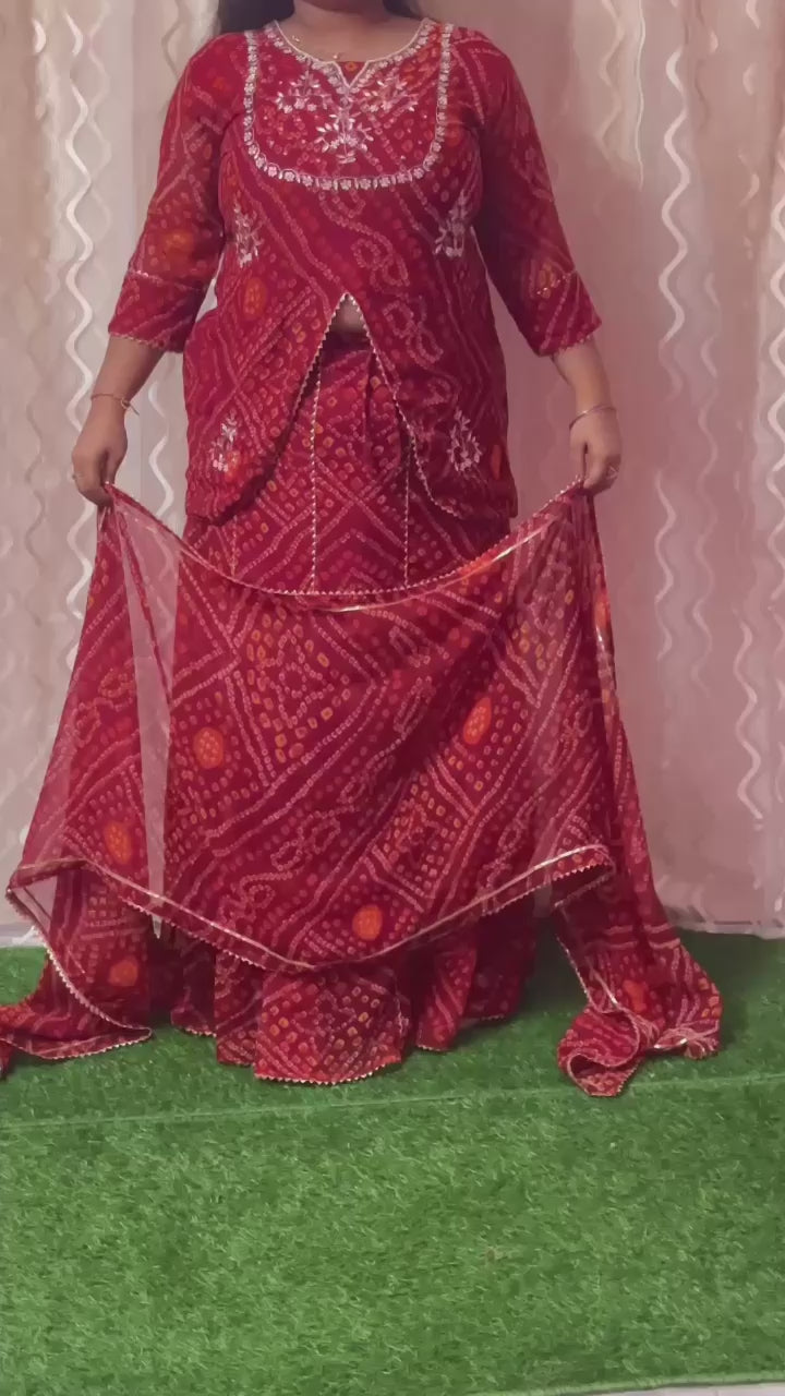 Heavy Hand work Bandhej 3 piece Set With Gota & Zardosi Add on