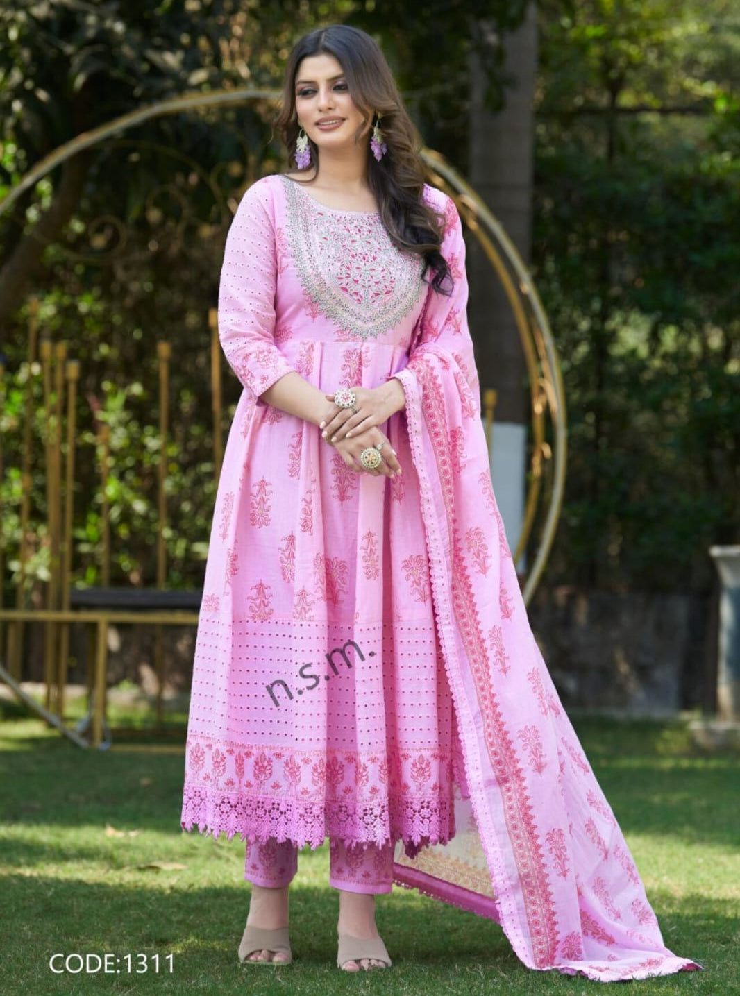 - Top- heavy embroidery neck work with pure cotton print anarkali style with shiffli panel work