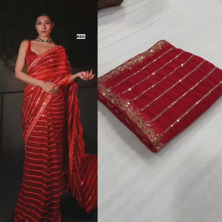 - Full Saree Of 60 Gram Georgette With Heavy 5MM Sequins Embroidery Work