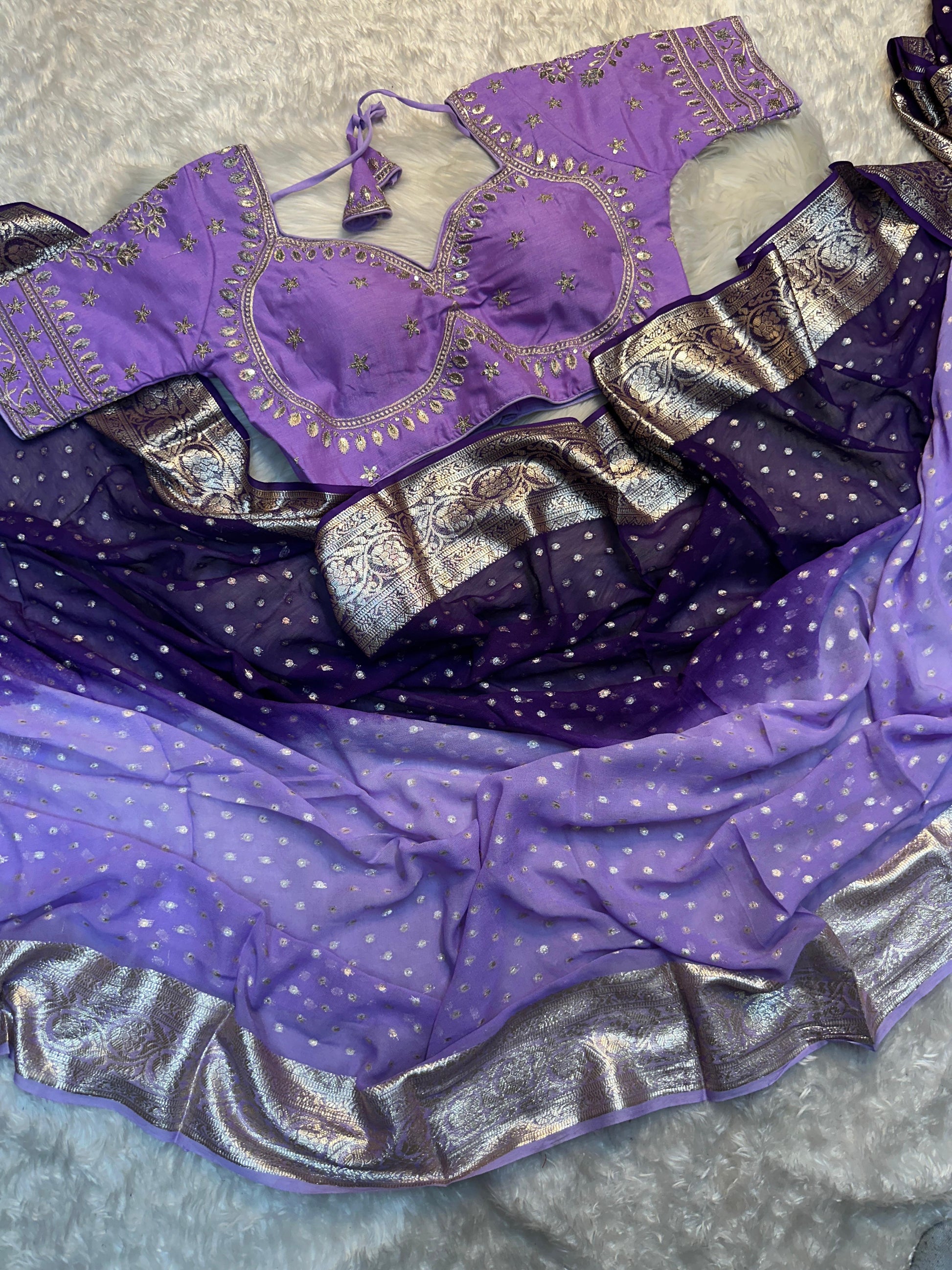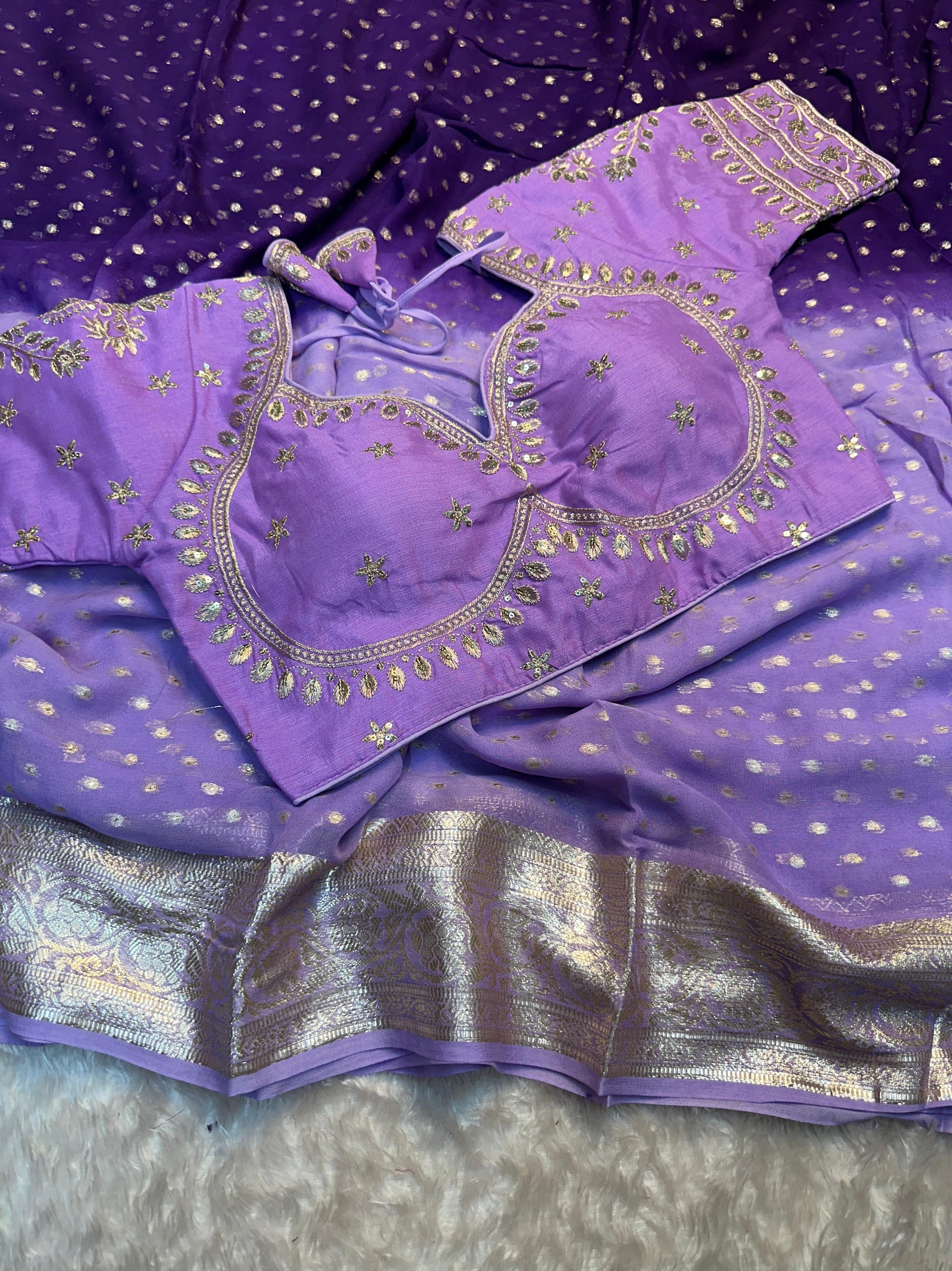 - Experience the elegance of a viscose georgette saree adorned with intricate Banarasi multi-embroidery stitch work