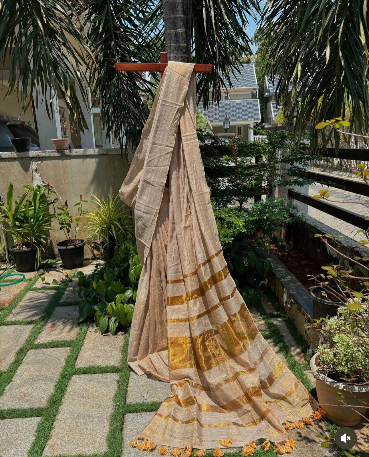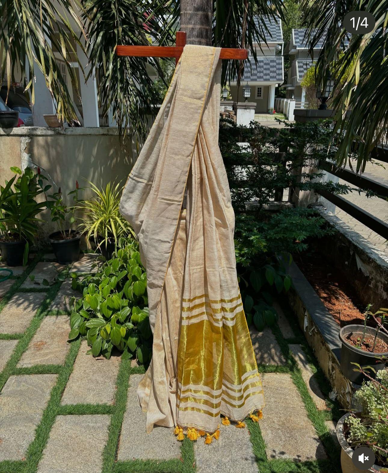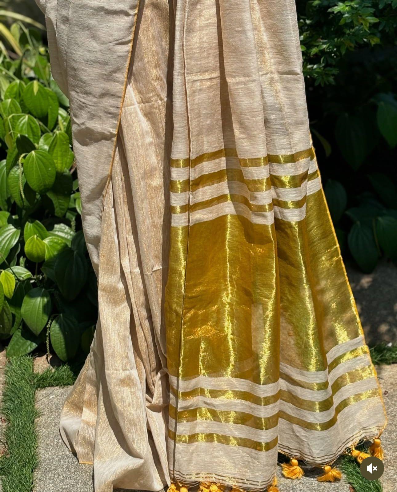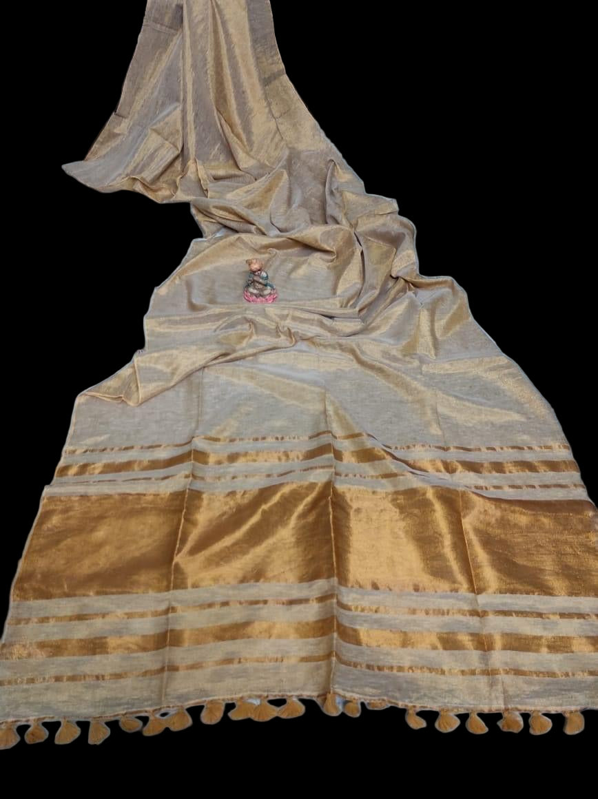 - This Tissue linen silk saree is crafted from premium 120-count fabric, ensuring exceptional quality and refined texture.