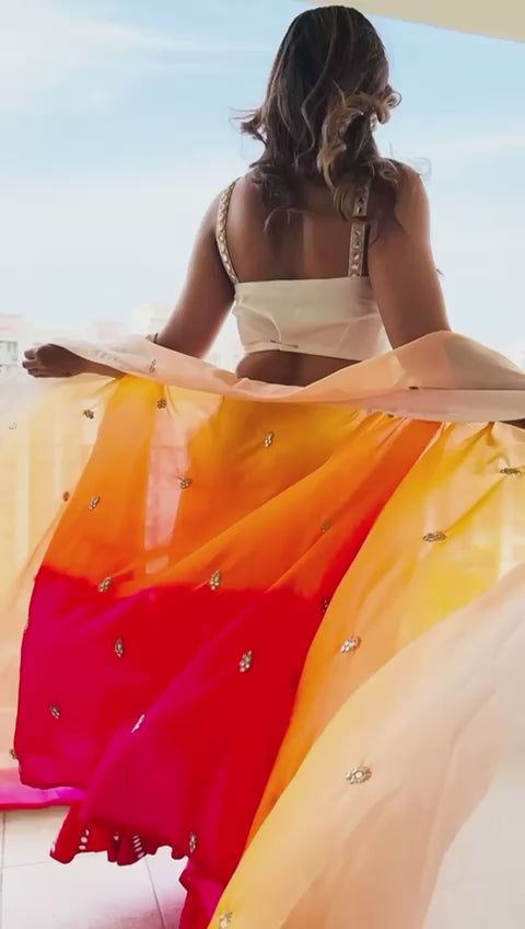 - Ombre ethnic lehenga with shrug, Embellished with mirror and zari work