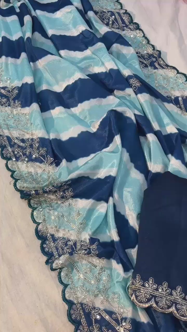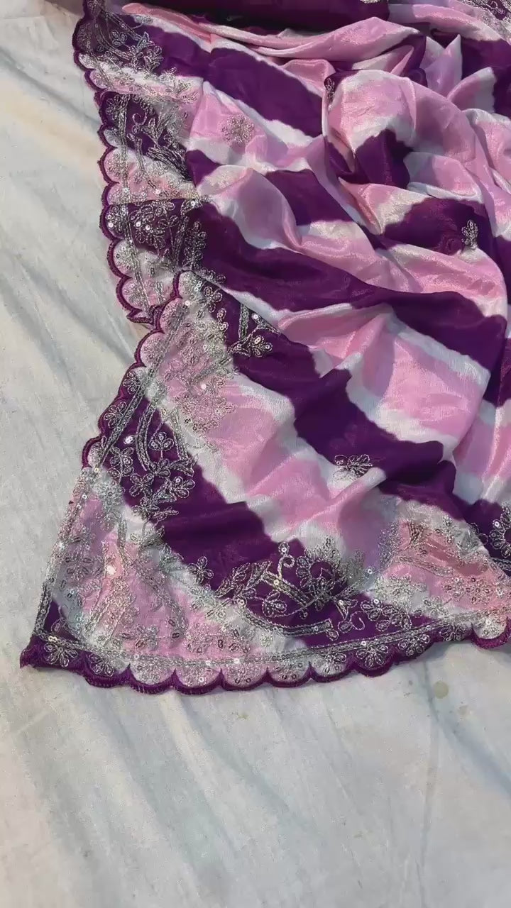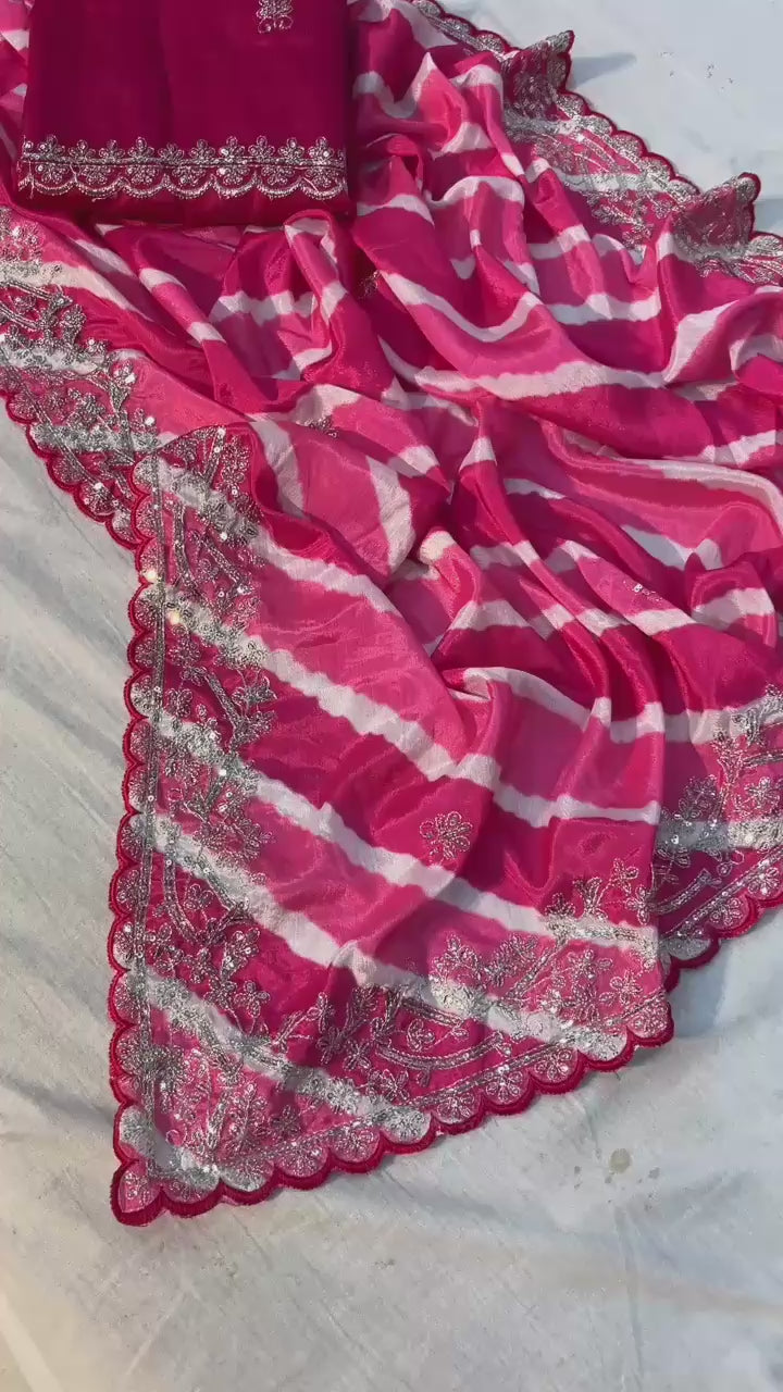 - Fabric & details :- soft chinon silk digital print saree with heavy c-pallu seqance zari work with butti in whole saree & cut work border