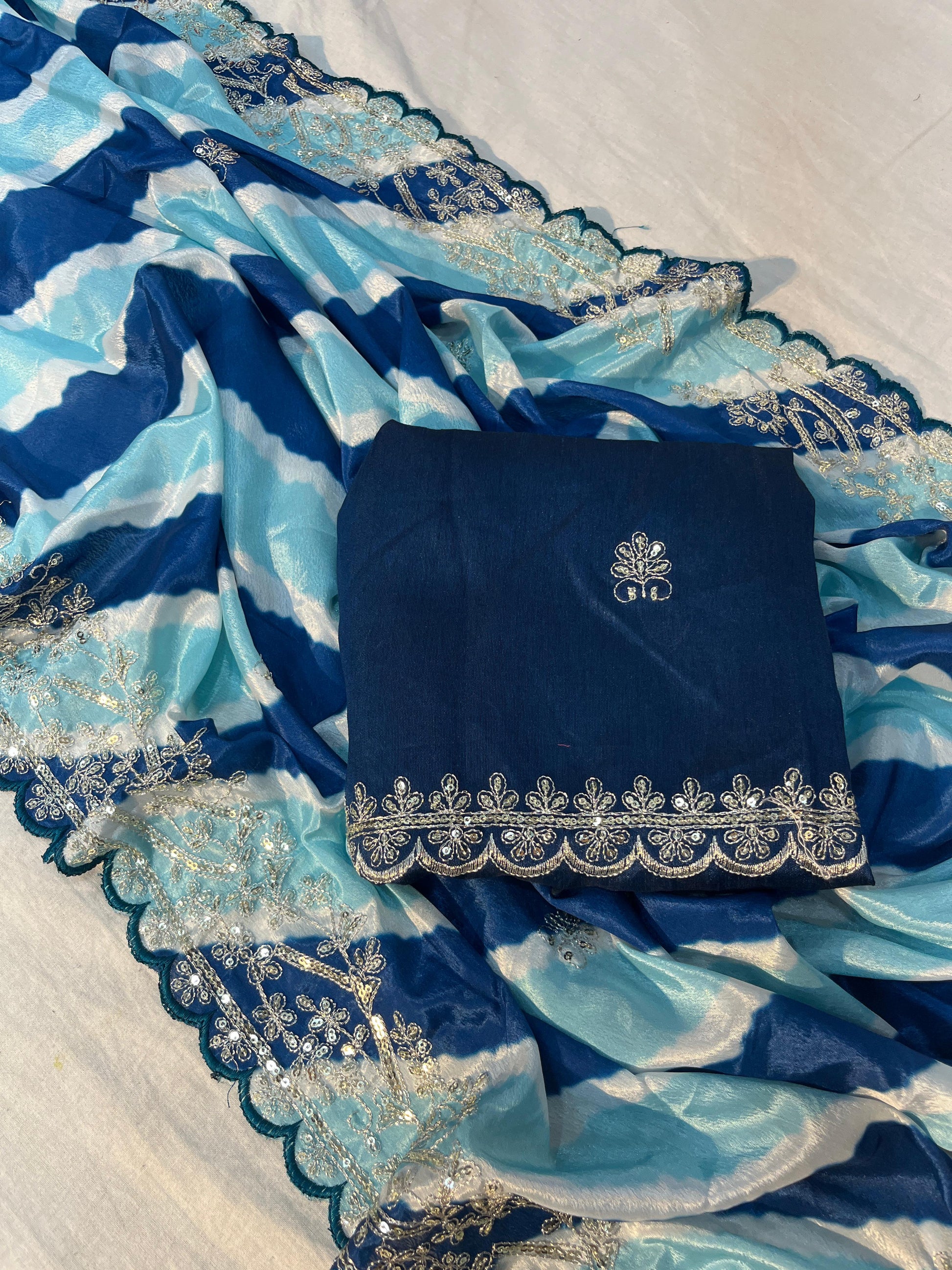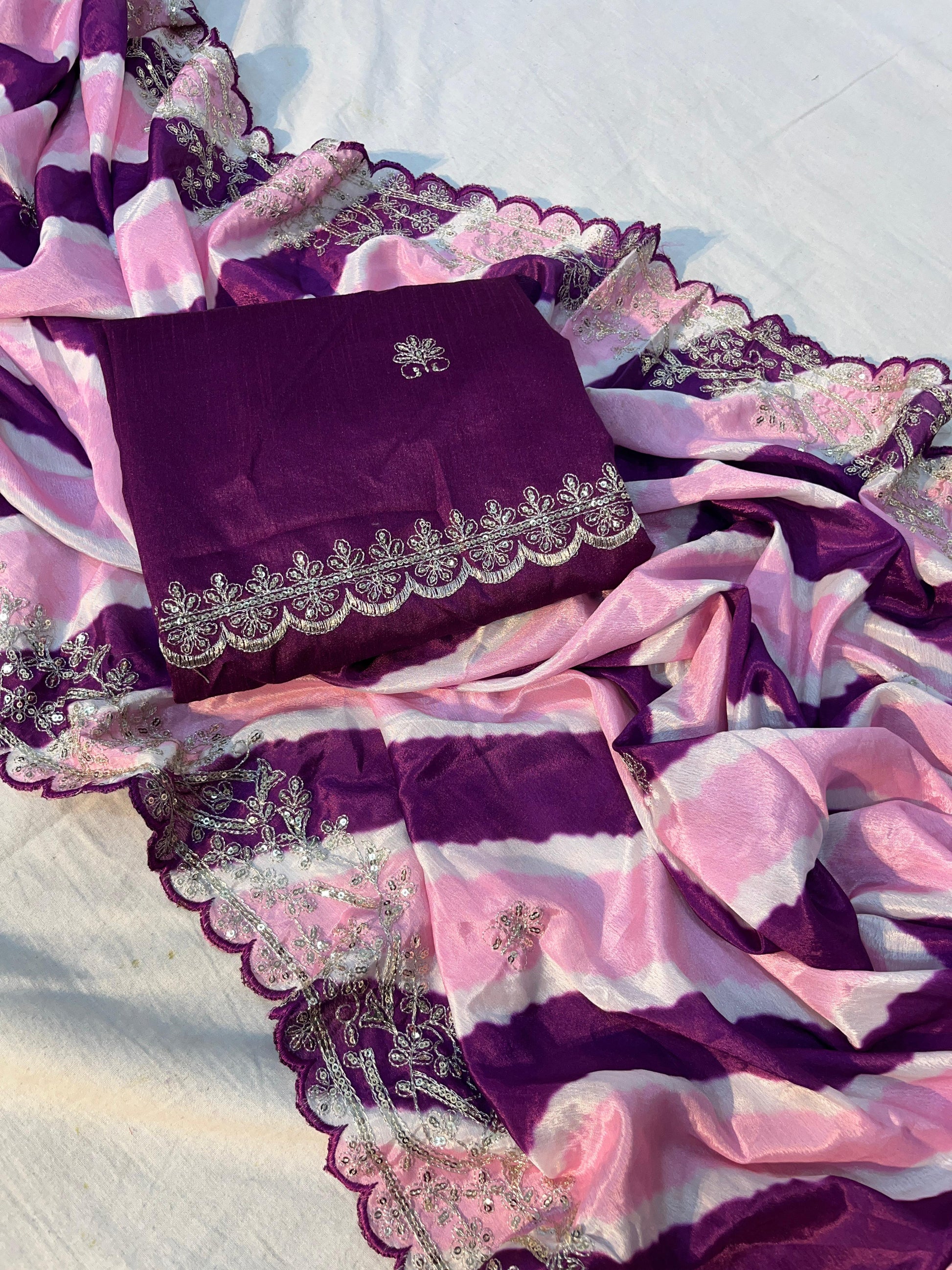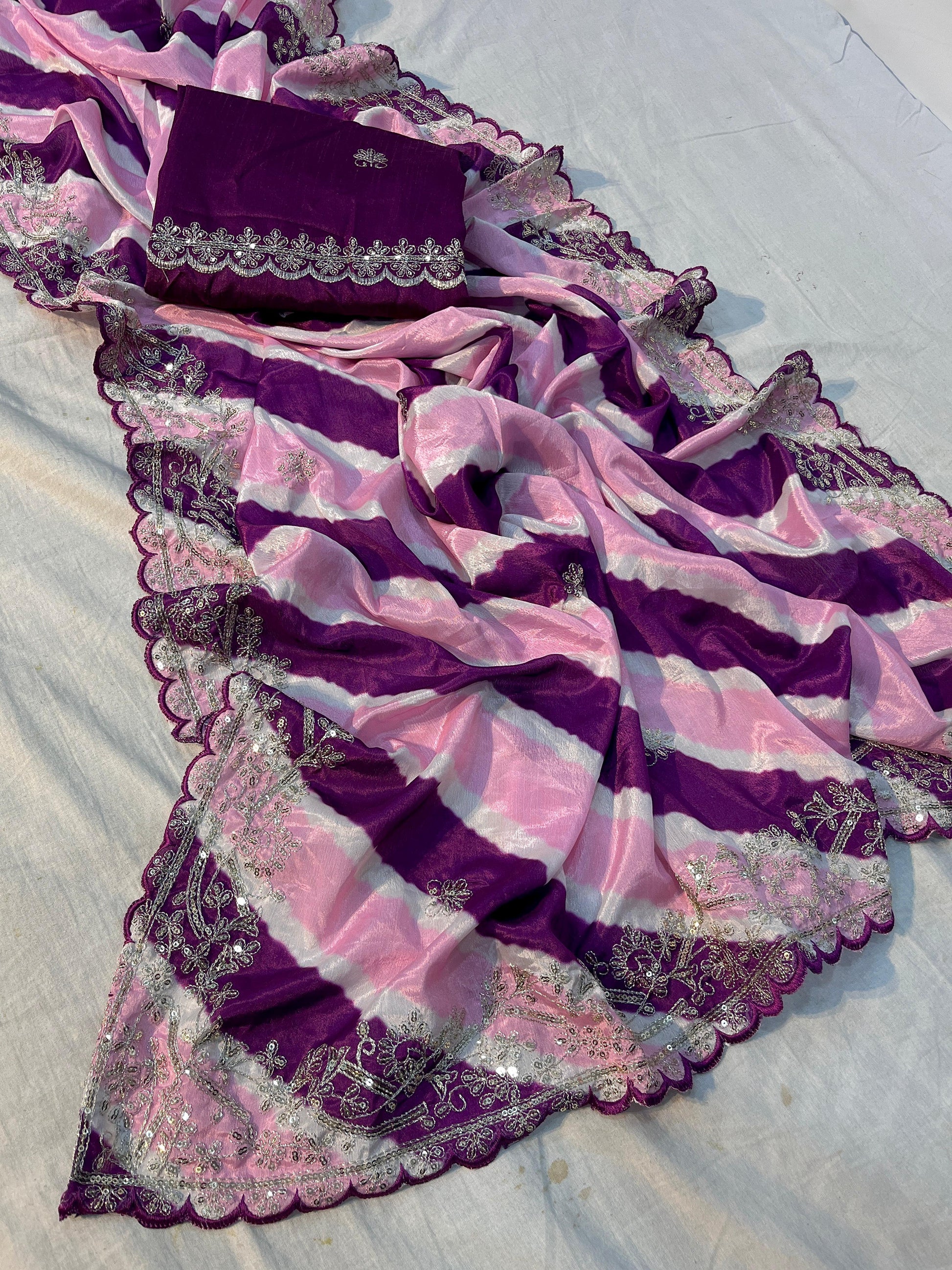 - Fabric & details :- soft chinon silk digital print saree with heavy c-pallu seqance zari work with butti in whole saree & cut work border