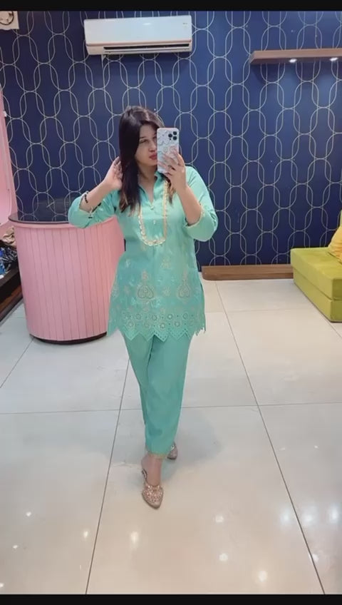- Beautiful Cotton Silk Fabric Cord set Highlighted With Embroidery